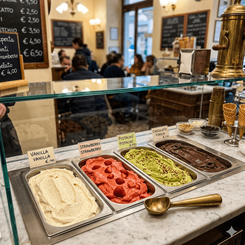 Gelato adalah dessert beku khas Italia yang memiliki tekstur lebih lembut, padat, dan rasa yang lebih intens dibandingkan es krim biasa. Rahasia kelezatannya terletak pada: