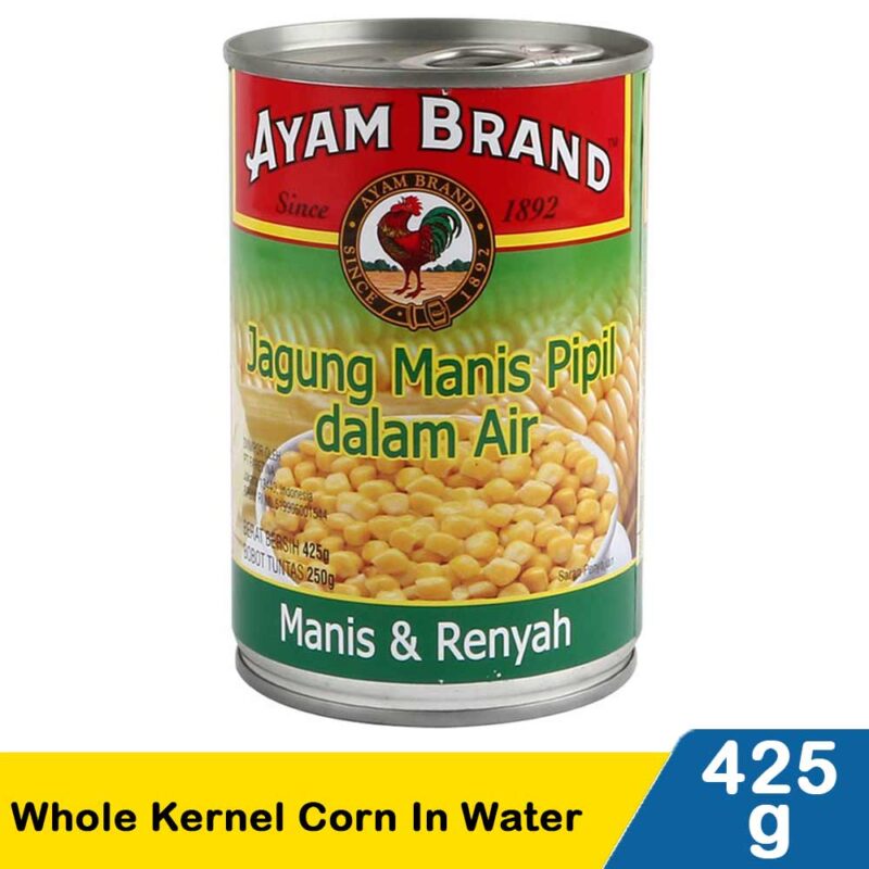 Ayam Brand Whole Kernel Corn in Water terbuat dari jagung alami pilihan begitu manis dan renyah, tanpa ditambah zat pewarna.