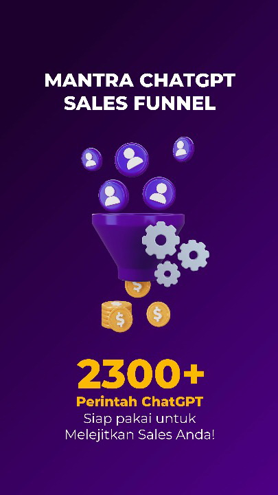 Di dalamnya ada 2300++ prompt yang disusun dengan output terbaik agar Anda bisa meningkatkan penjualan Anda menggunakan sales funnel.