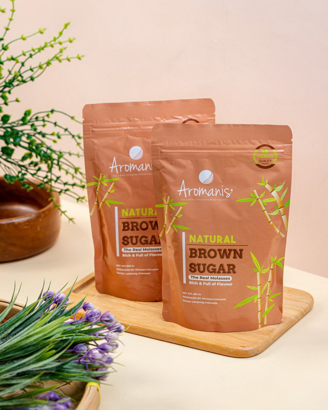 Aromanis Brown Sugar dengan sari asli gula tebu tanpa campuran pengawet dan bahan kimia lainnya.