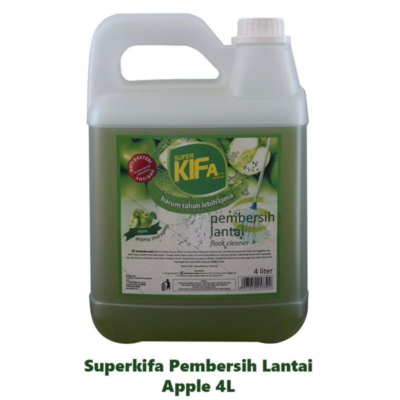 - Superkifa Pembersih lantai diformulasikan khusus untuk membersihkan lantai dari kotoran dan membunuh kuman serta tidak meninggalkan bau tidak sedap setelah lantai dibersihkan. Dengan ekstra bahan aktif anti kuman Benzalkonium Chloride mampu melindungi lantai Anda sepanjang hari dari kuman saat lantai Anda dalam keadaan bersih. Wangi aroma terapinya mampu memberikan keharuman yang segar dan tahan lama serta mencegah bau yang tidak sedap di ruangan Anda.