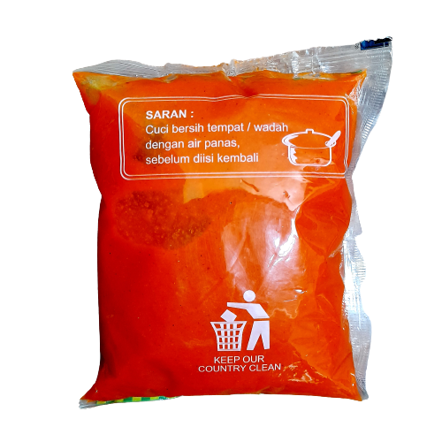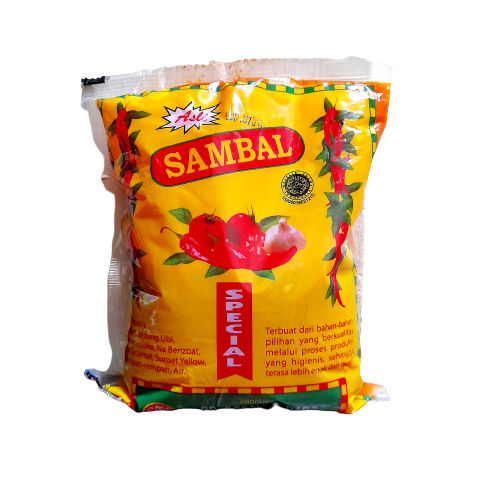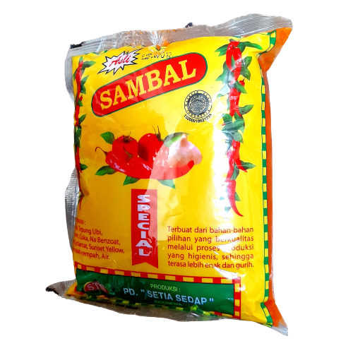 Komposisi : Cabai, Tepung ubi, Garam, cuka, Natrium Benzoat, Natrium Cyclamat, Sunset Yellow, Rempah-rempah, air